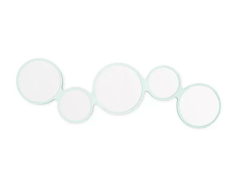 Komplet 5 ogledal na skupni površini. Ogledala so izdelana iz varne, trdne in proti praskam odporne plastike. Je odličen pripomoček za malčke, saj omogoča refleksivno izkušnjo lastnega telesa ali različnih predmetov pri terapiji motenj senzorične integracije. Uporaben je lahko tudi med logopedskimi vajami. Komplet vsebuje pritrdilni material za obešanje na steno. Specifikacije izdelka: 1 x ogledalo s kavlji; 2 x vijaka KW 6 x 6 cm (z zidnimi vložki); dimenzije kompleta: 100 x 30 cm; premer ogledal: 1 x 23 cm, 2 x 22 cm, 2 x 15 cm; material: MDF plošča, debeline 12 mm, v zeleni barvi, 2 mm debelo zrcalno pleksi steklo