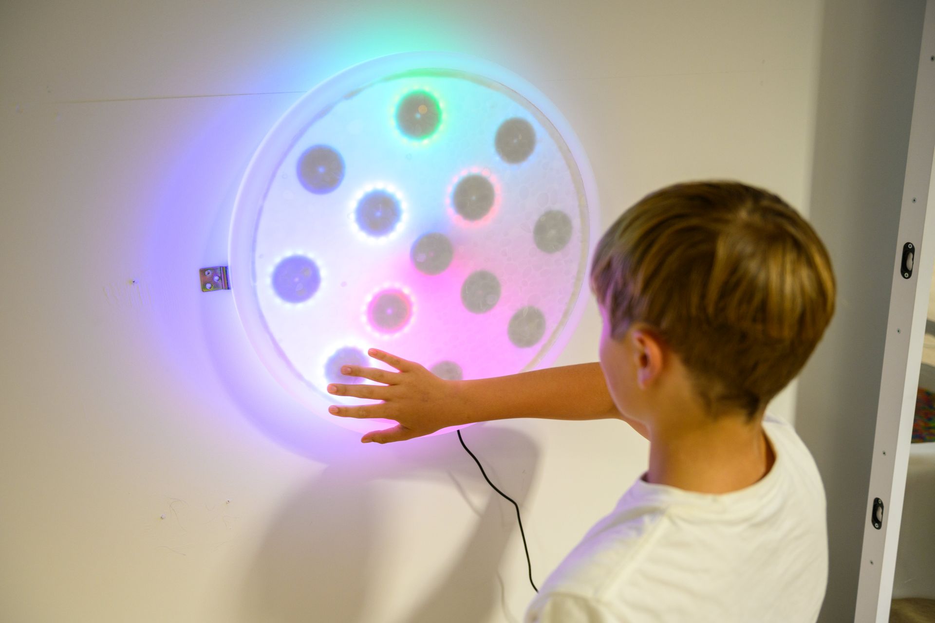Plošča za razpoloženje ima odzivne LED luči, okroglo mizno ploščo, ki reagira na dotik, gibanje in pritisk ter zasveti z živahno svetlobo povsod, kjer pride do interakcije. Lahko se tudi riše vzorce s prsti, drsečimi predmeti ali z ritmi tapkanja, s katerimi se otroci lahko ukvarjajo s svetlobno predstavo, ki nastaja pod njihovimi rokami.