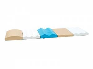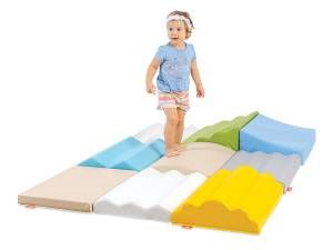 Komplet petih rehabilitacijskih poti je odlično orodje za spodbujanje motoričnih in senzoričnih sposobnosti pri majhnih otrocih. Prevlečene so s PVC tkanino brez ftalatov, odporno proti obrabi, kar zagotavlja varnost in vzdržljivost. Z različnimi višinami (5–20 cm) in nedrsečo teksturirano PVC tkanino na dnu lahko otroci skozi igro razvijajo občutek za ravnotežje in koordinacijo. Vaje na poteh podpirajo motorični razvoj in zavedanje telesa, zaradi svoje vsestranskosti pa so primerne za različne terapije.