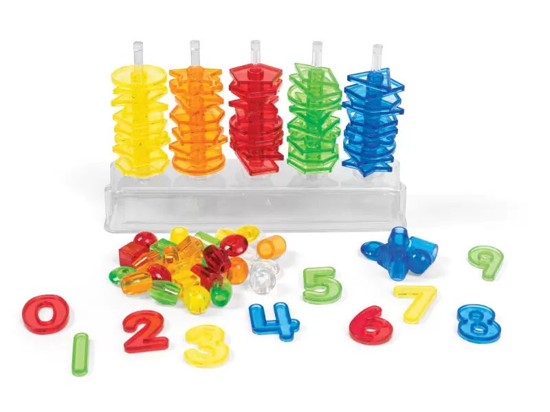Večfunkcijski abakus (okvir za štetje). Vključuje 3 komplete prozornih kock: figure (10 oblik v 5 barvah), kroglice (6 oblik v 6 barvah) in številke (od 0 do 9). Namenjen je štetju, razvrščanju ter učenju barv in številk. Abakus pomaga pri razvoju koordinacije in motoričnih sposobnosti.