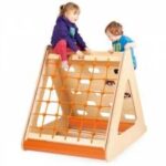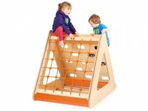 Gimnastični trikotnik iz vodoodporne barvane vezane plošče. Vsaka stran omogoča izboljšanje koordinacije. Možne so 3 aktivnosti: plezalna stena, plezalni avtomobilček in lestev; 104 x 117 x 93 cm