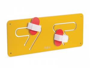 Stenski labirint za igro in vadbo stopal. Dejavnost s ploščo spodbuja motorični razvoj in pomaga krepiti mišice nog, kolen in stopal. Izdelek je treba pritrditi na steno. dimenzije: 30 x 80 x 3,5 cm; barva: siva, material: siva MDF plošča, potrebna samostojna montaža; pritrditev stopal z ježkom; starost: 3+