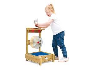 Z uporabo dveh lijakov lahko v mlin nalijete vodo in opazujete vrtenje kolesa. Glede na to, kateri lijak izberete, se bo kolo vrtelo v smeri urinega kazalca ali v nasprotni smeri urinega kazalca.
