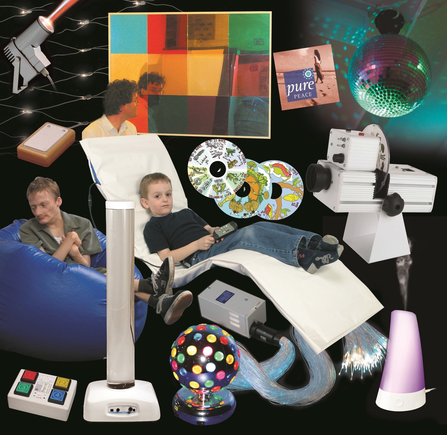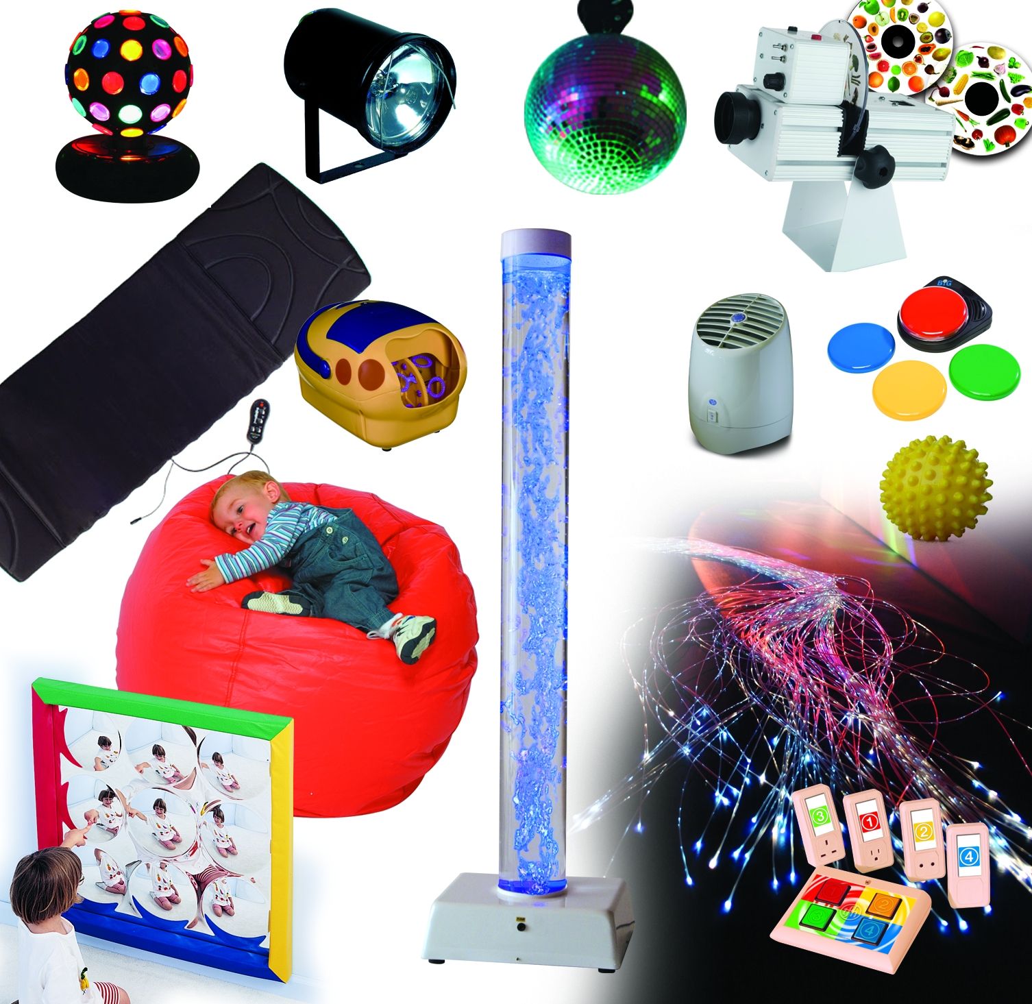 Disko žoga, Vrtilnik disko žoge, Žele, Zvezdna mreža, Resonančni žakelj, Masažna blazina, Prevleka za masažno blazino, Zvočna Aroma SPA, 1,2m Vodni stolp, SNAP Projektor, 3x SNAP kolesa, Vrteča lučka, 100 optičnih vlaken, Vir svetlobe za optična vlakna, Bick Mack odzivno stikalo, Množično ogledalo, Stikalo žoga, Kontrolna škatla