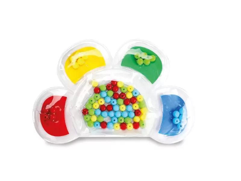 Gel cvet, napolnjen s tekočino in perlicami v različnih barvah. Stimulira živce roke in razvija občutljivost na dražljaje. Cvet lahko služi tudi kot pomoč pri učenju barv in štetju. Material: PVC. Dimenzije: 19 x 11,5 cm. Starost: 3+