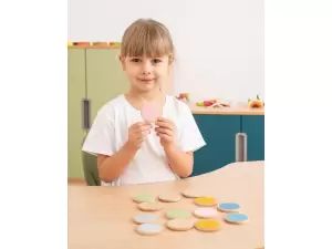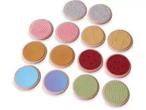 Senzorični zapis je komplet lesenih diskov, ki združujejo klasično igro spomina s senzoričnimi elementi. Ena stran vsakega diska ima teksturirano nalepko, cilj igre pa je uskladiti ne le slike, temveč tudi teksture, kar razvija občutek dotika in koordinacijo rok in oči. Igra vključuje obračanje diskov in iskanje parov z enako teksturo. Odlično podpira senzorični razvoj, koncentracijo in spomin.