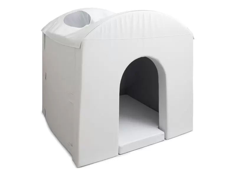 Bela terapevtska hiša je prekrita s PVC tkanino brez ftalatov, odporno proti obrabi, in napolnjena z visoko elastično poliuretansko peno. Ta prostor je zasnovan z mislijo na dejavnosti senzorične integracije. Poltema v notranjosti spodbuja izbiro dražljajev iz okolja, kar omogoča igro z izbranimi čutili.