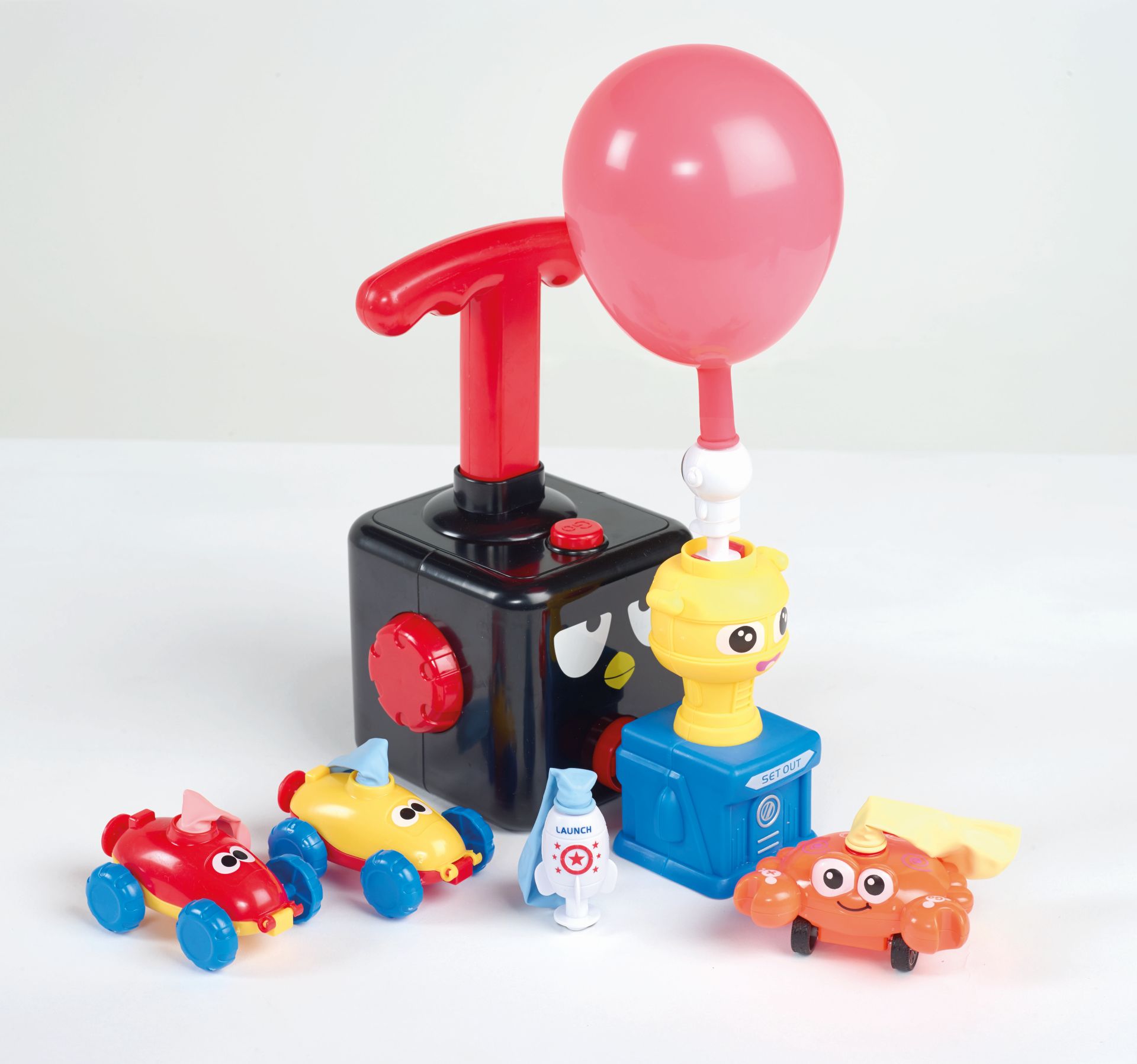 Velik rdeč ročaj olajša napihovanje. Priključitev avtomobila ali rakete na črpalko zahteva nekaj natančnosti, povezava balona z avtomobilom (ali raketo) je težavna (ko pa je “naložen” ostane na mestu). Najlažje je pritisniti gumb za izstrelitev vozila na balon.