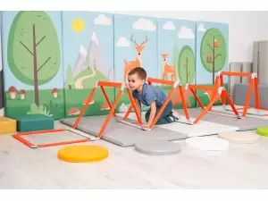 Zložljiva lestev je vsestransko orodje, ki podpira razvoj telesne pripravljenosti v izobraževalnih okoljih. Pomaga pri razvoju koordinacije, agilnosti in hitrosti ter vključuje zabavne elemente v telesne vaje. Zahvaljujoč zložljivi zasnovi je lestev enostavna za shranjevanje in transport, kar omogoča hitro in priročno pripravo na različne dejavnosti. Trdna konstrukcija zagotavlja stabilnost, nastavljiv razmik med prečkami pa omogoča prilagajanje stopnje težavnosti potrebam uporabnikov. Zloži se lahko tudi v obliko, primerno za vaje skakanja.